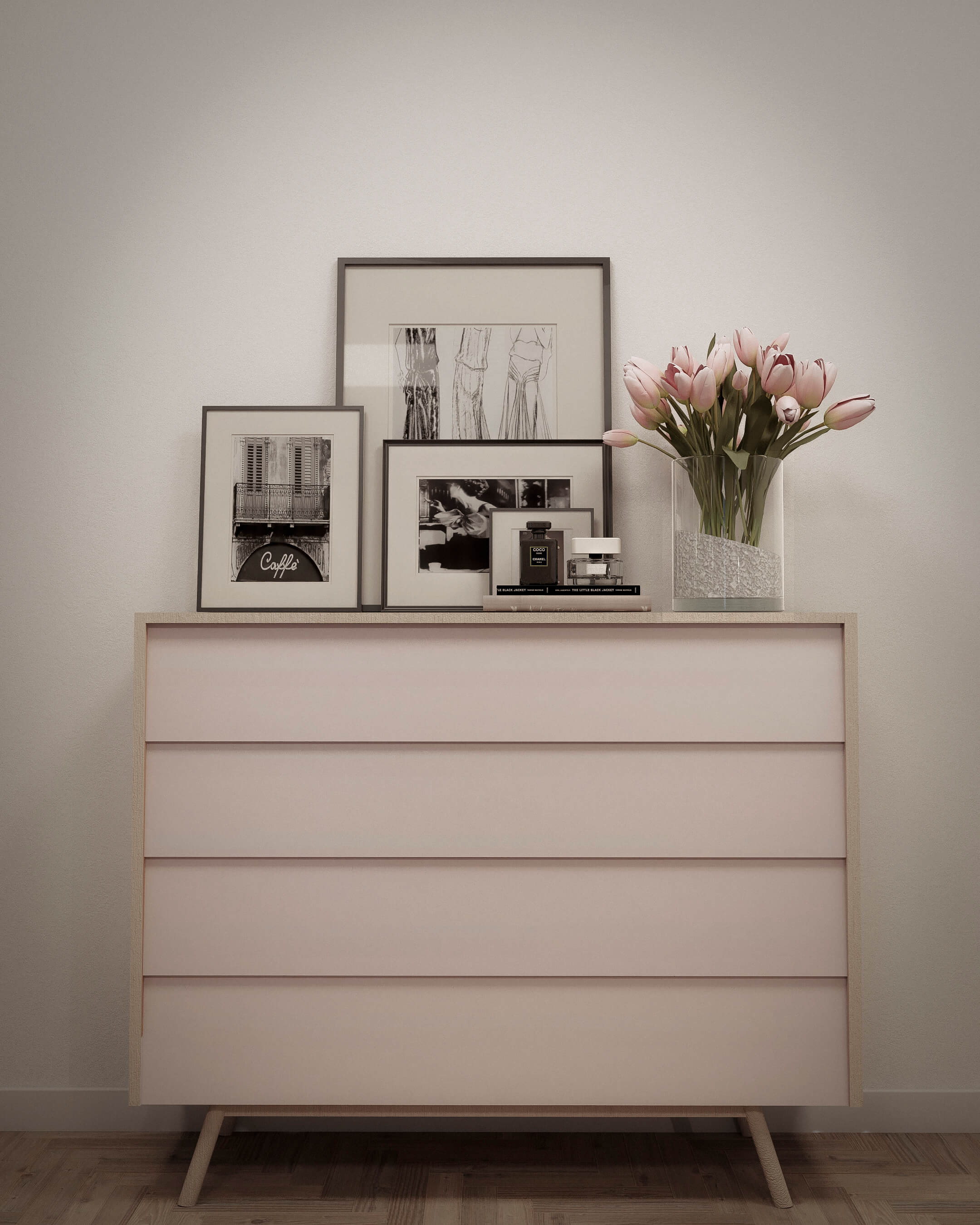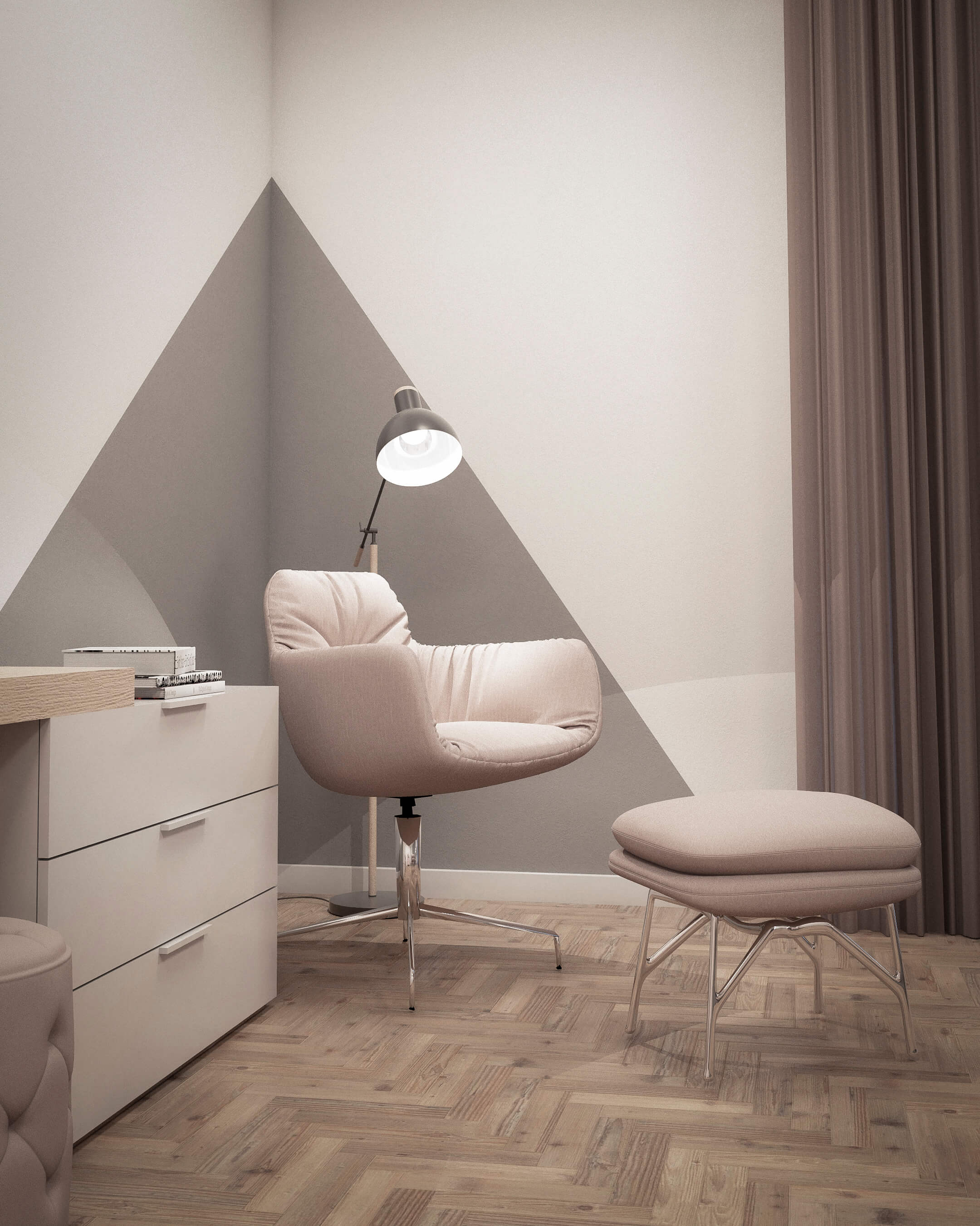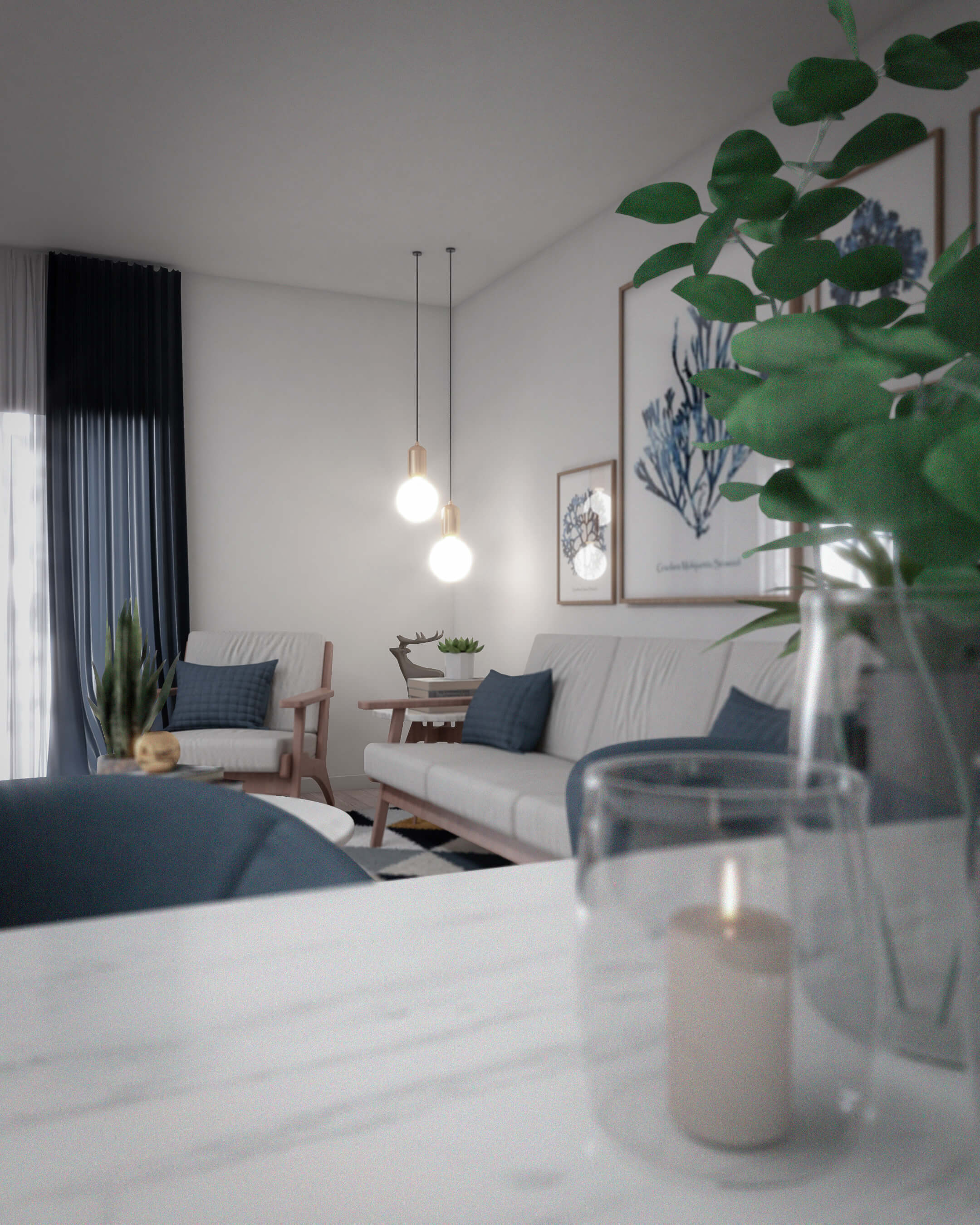 Se solicita el diseño del salón comedor y dormitorio principal de una vivienda situada en un complejo residencial en el sur de la isla.