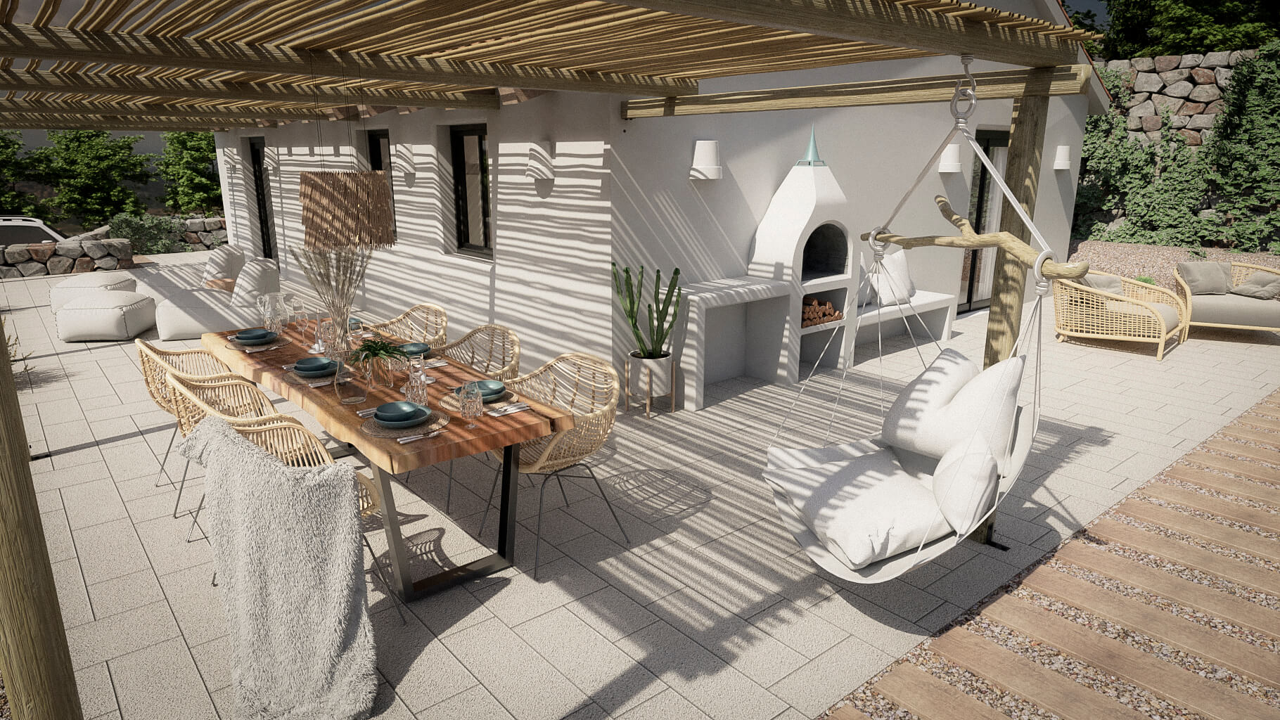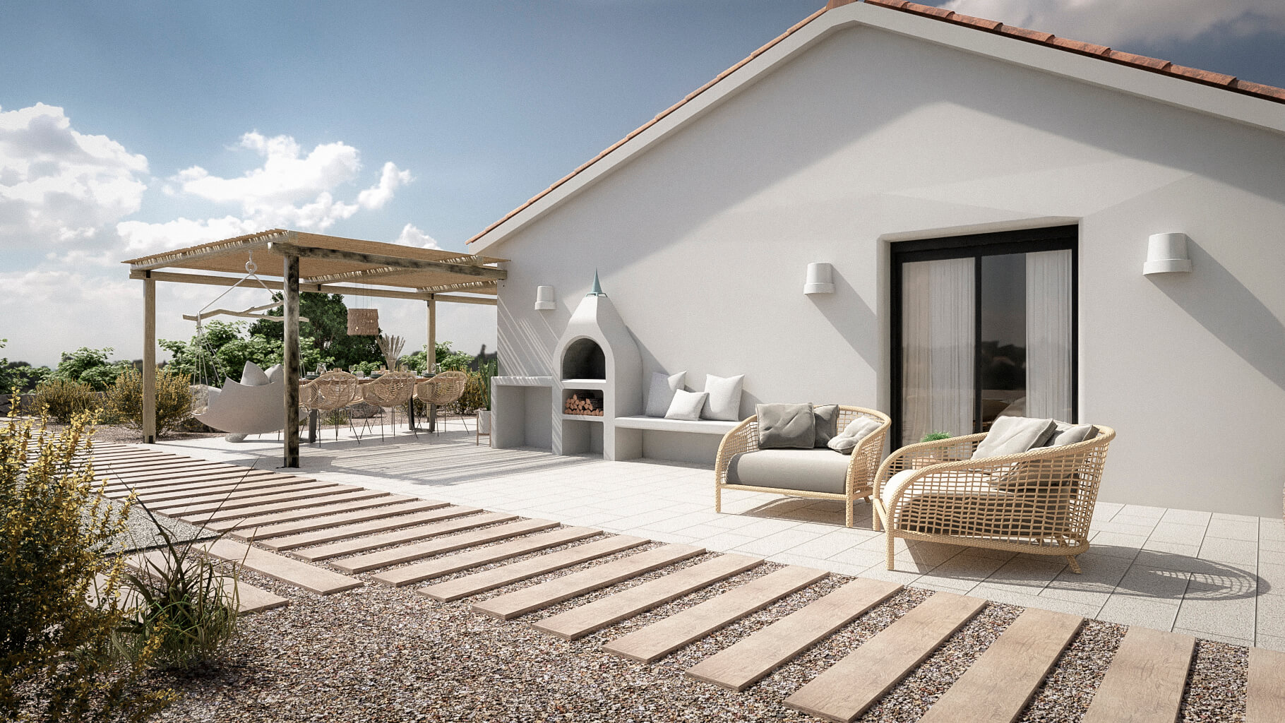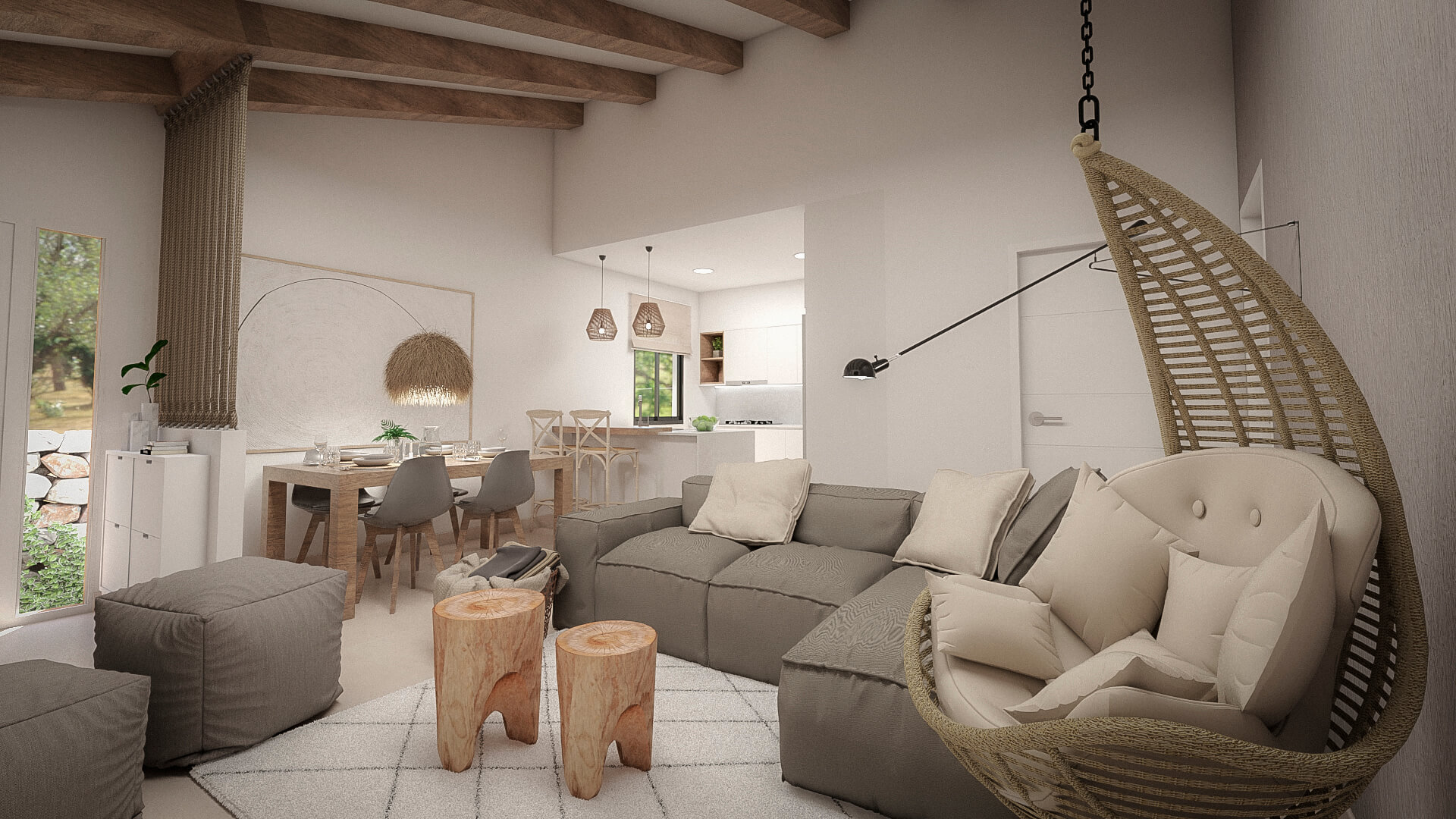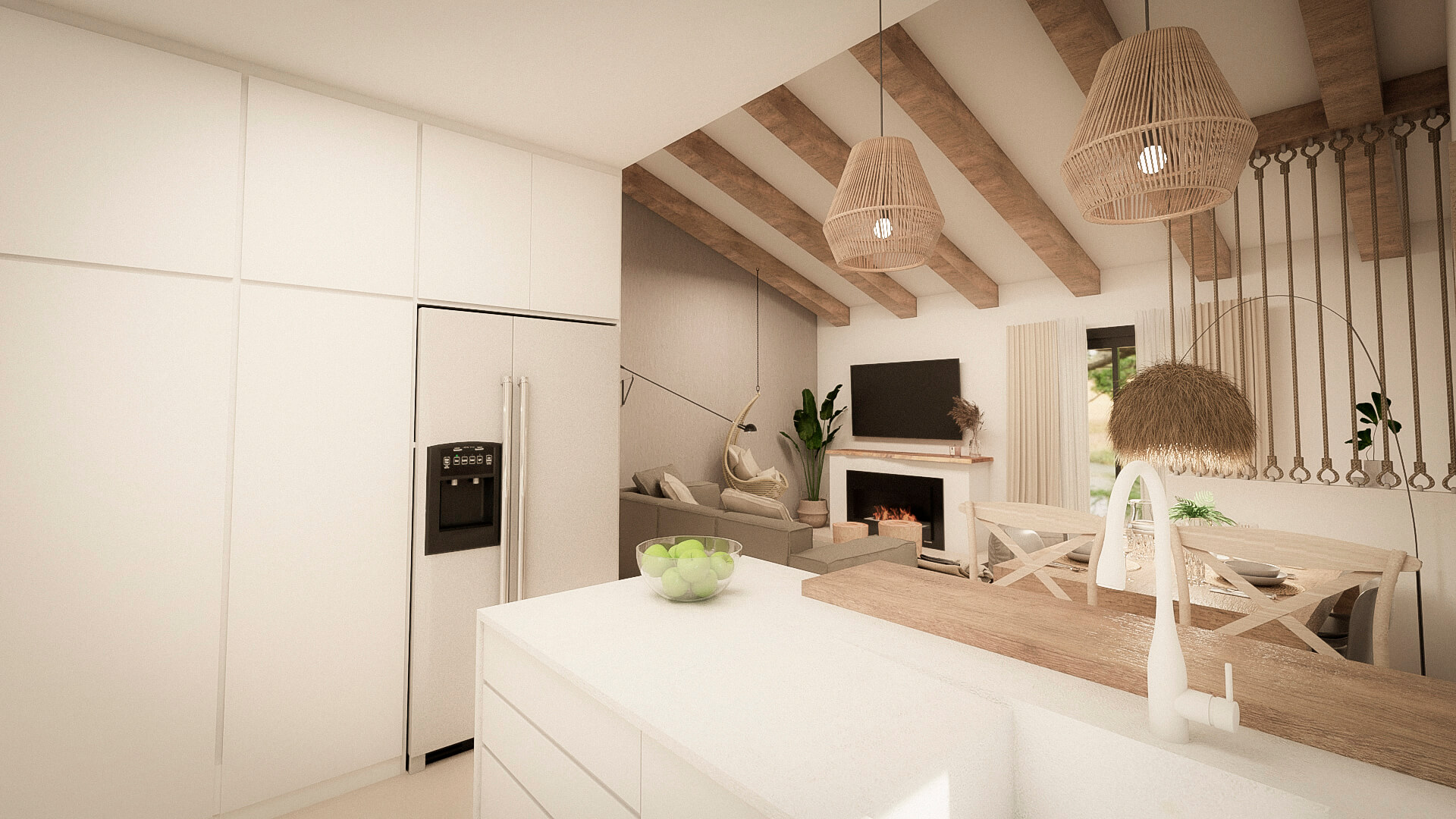 En general se opta por una decoración tradicional que invita al estar y disfrute de cada una de las estancias. Y como elemento singular se destaca la cubierta de madera que aporta calidez y personalidad a las estancias.