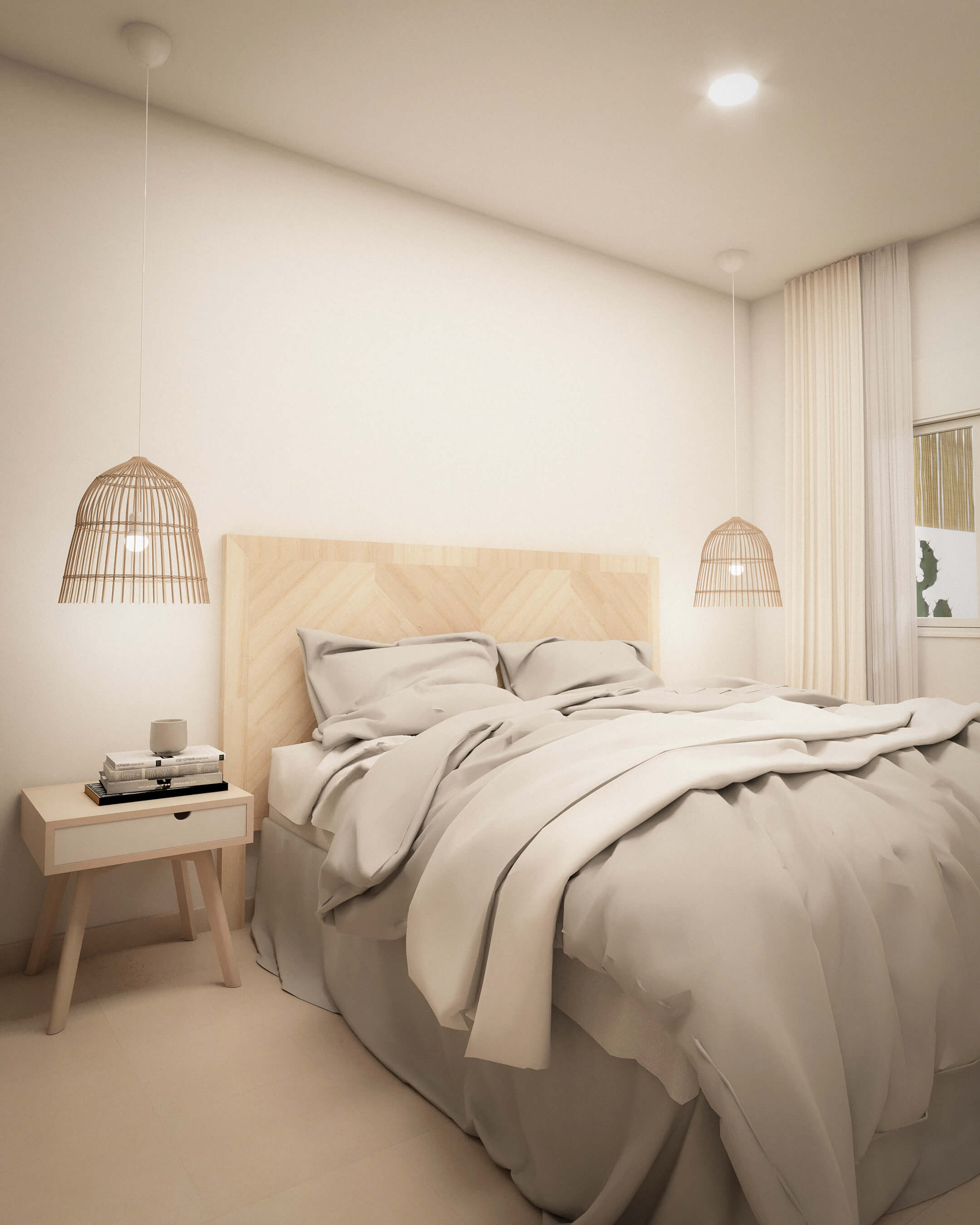 Se consigue que los dormitorios tengan encanto con esos pequeños elementos que hacen que algo sencillo se convierta en espectacular. En este dormitorio hemos buscado colores neutros combinados con madera. Un