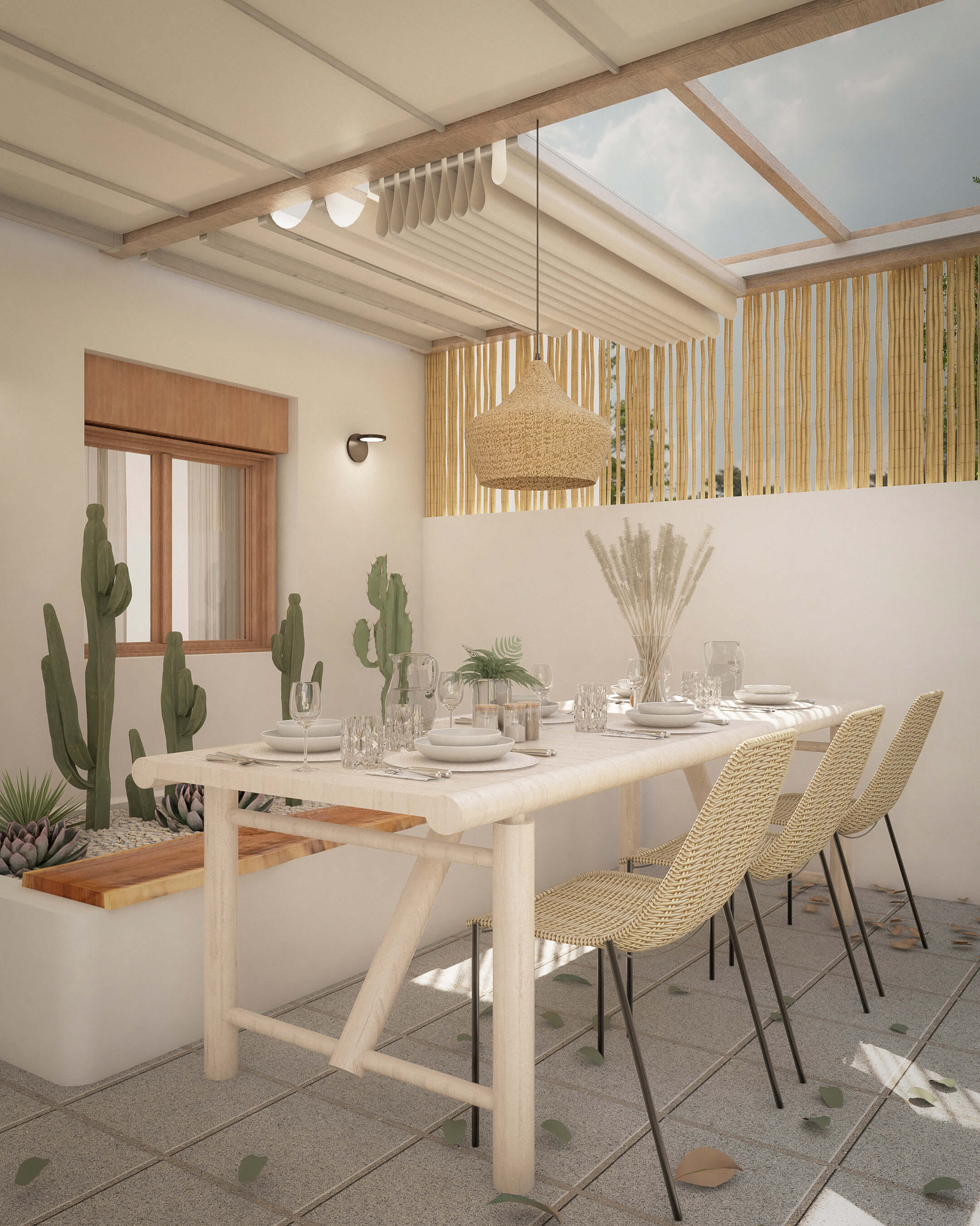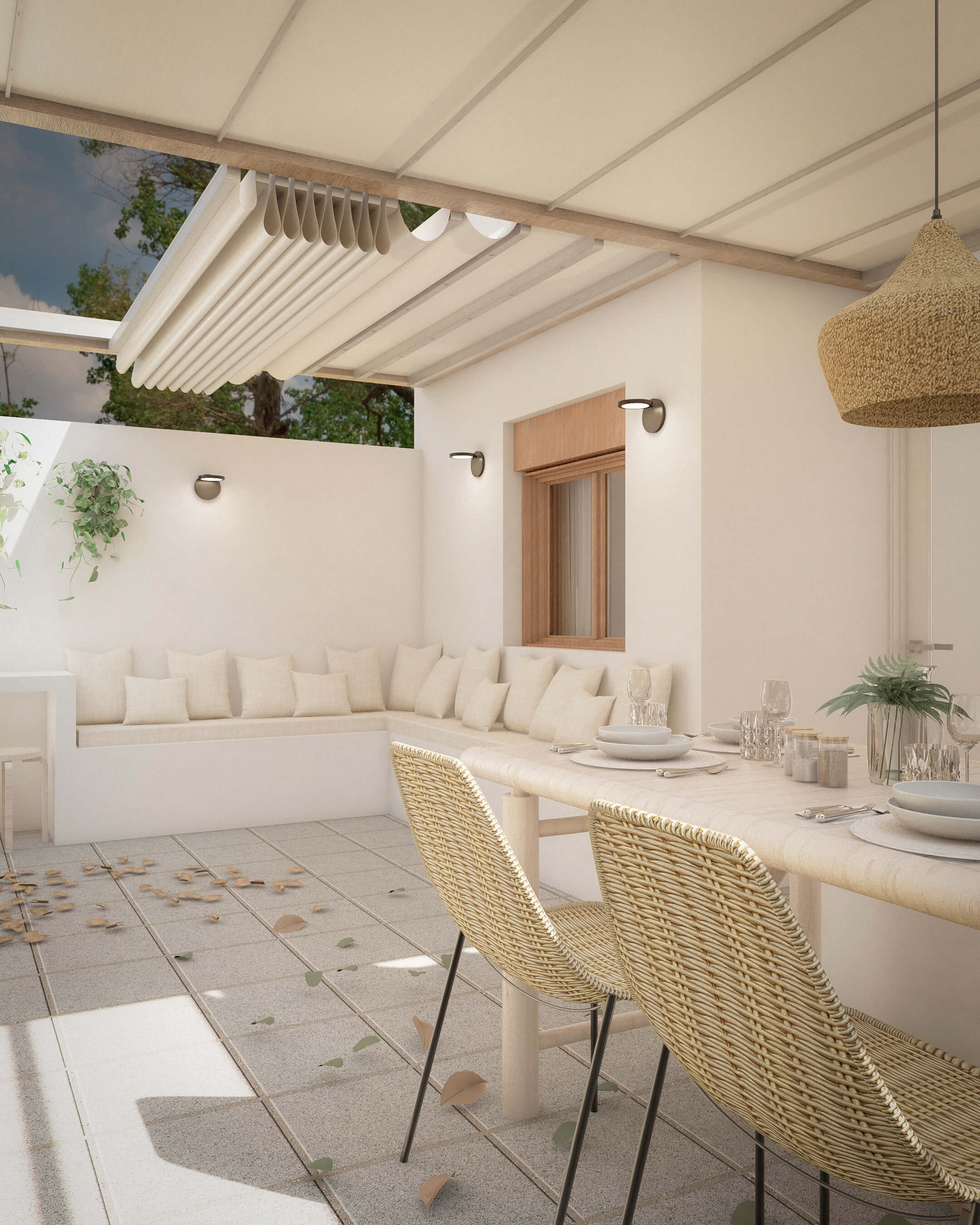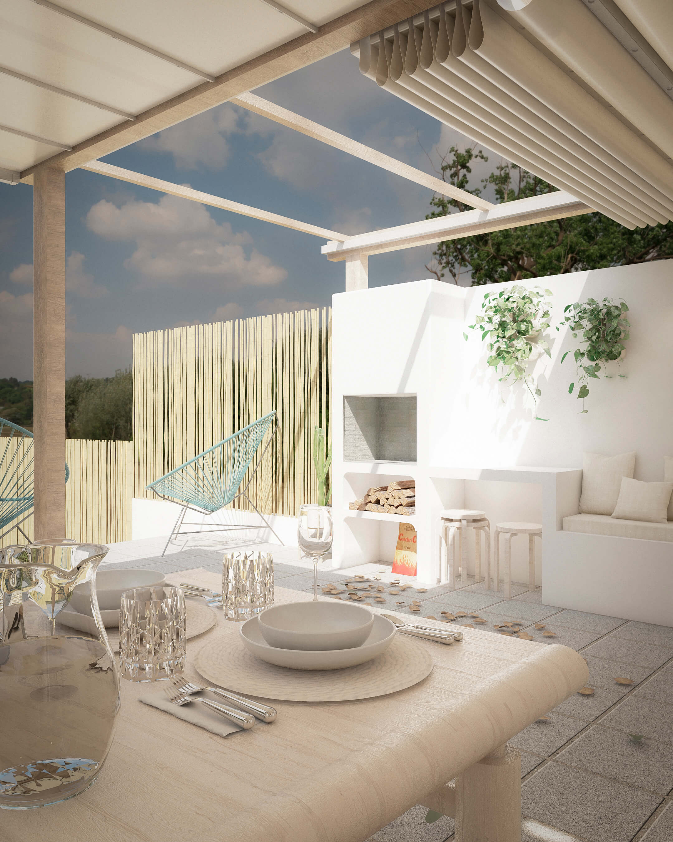 La nueva distribución de esta terraza y la nueva formación de un bancal permite optimizar mucho más el espacio que queda libre. En dicha terraza juega un papel muy importante la vegetación, una buena iluminación y el mobiliario.